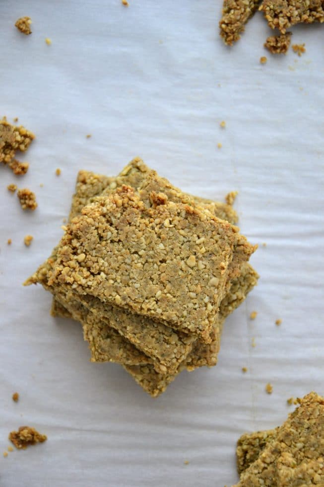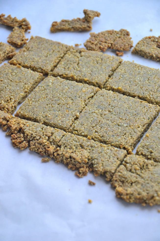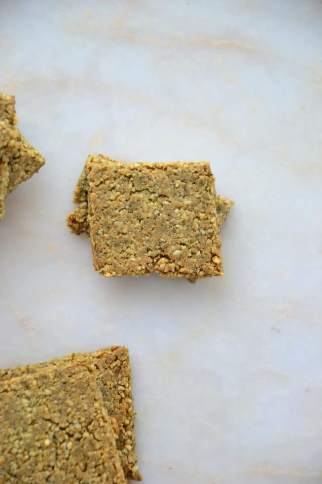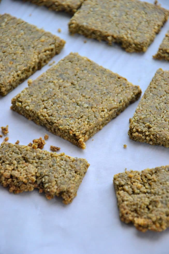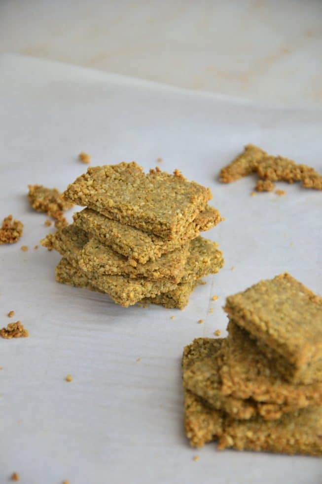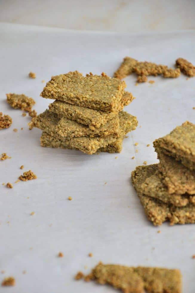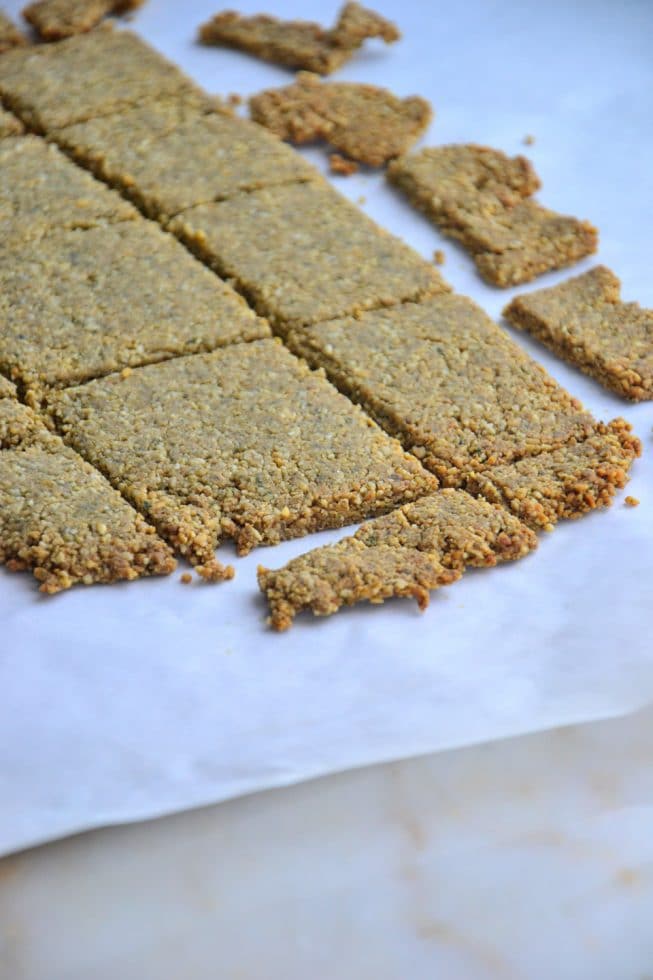 Because these homemade crackers are loaded with healthy fats and protein and nutrients in each bite – so they will stabilize your blood sugar and will NOT turn to sugar in your body because they are not made from white flour.