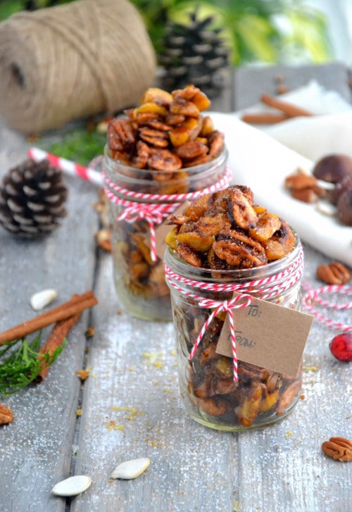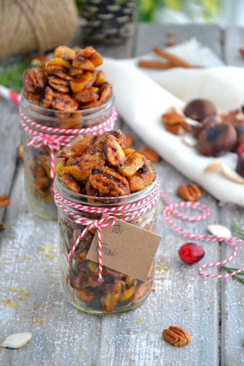 Let those babies dry on some parchment paper and then you can toss them into cute mason jars with ribbon and tags to give to your holiday buddies. It’s all about the cute packaging, folks.