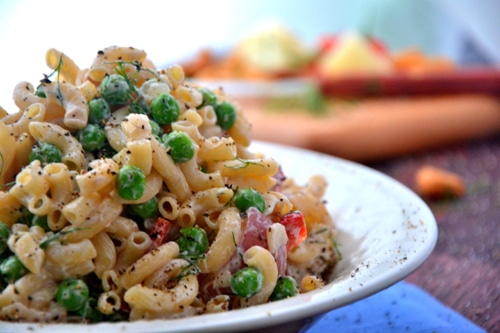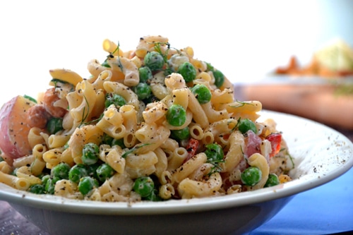 Let me tell you, you’ll need a whole lotta this pasta salad to serve with your grillin’ main course because it’s pretty darn good.