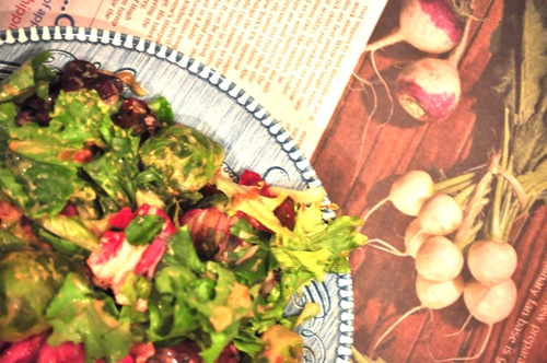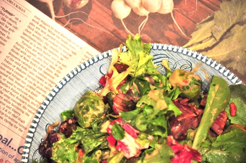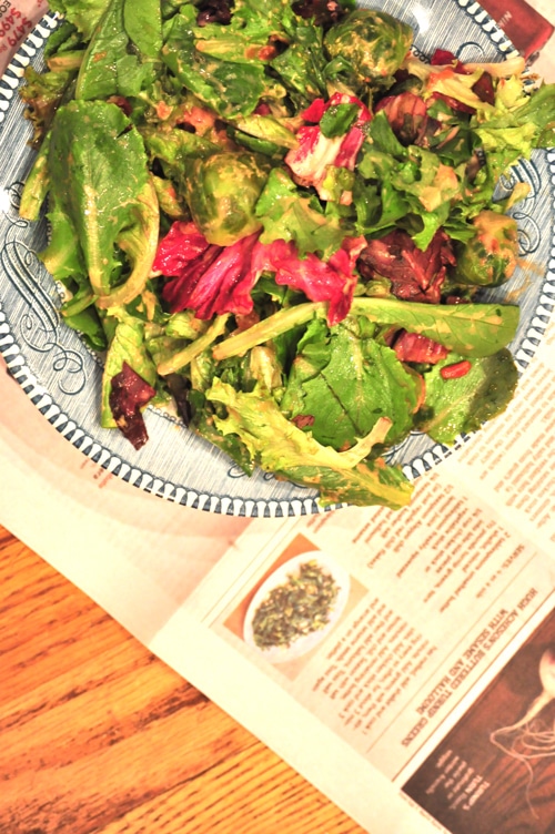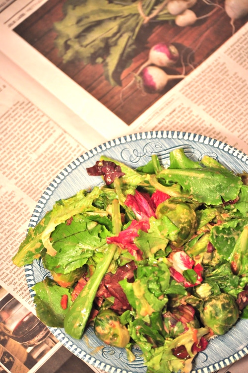 When tossed into a fun salad with fresh ginger, lemon juice and maca these Brussels sprouts become candy on my tongue.