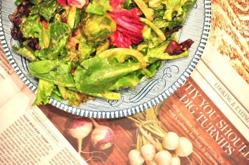 - 4 cups mixed greens (spinach, radicchio, etc)