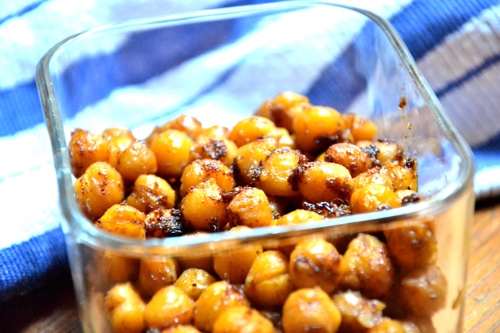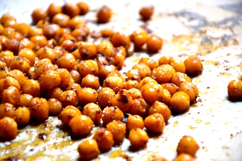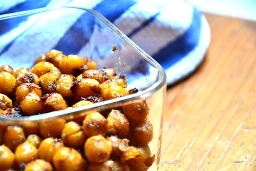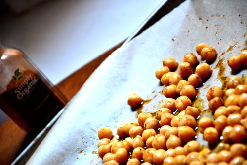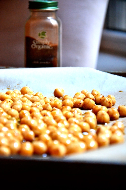- Gently toss chickpeas in a bowl with oil, agave nectar and vinegar. Sprinkle with cinnamon and chili powder.