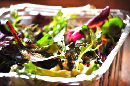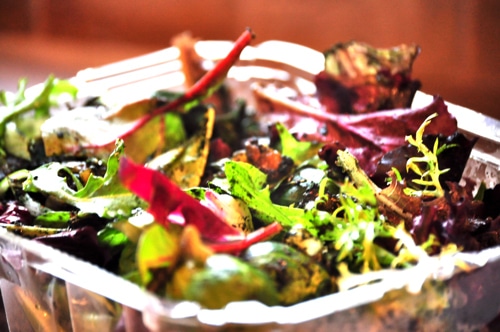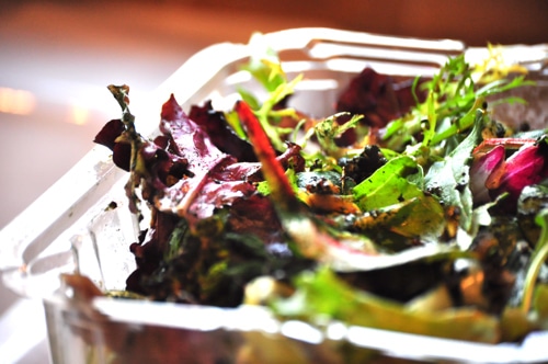 I’ve recently purchased those pretty organic salad greens in the plastic containers.