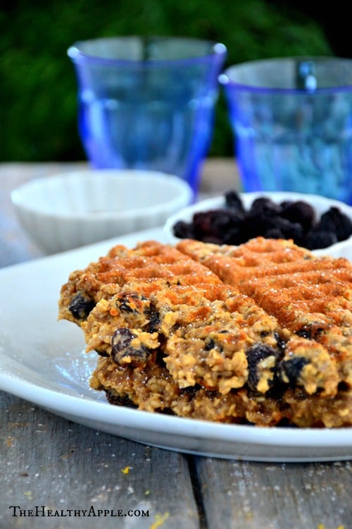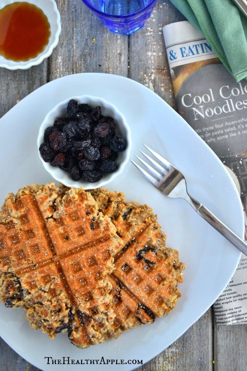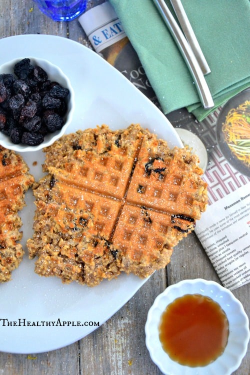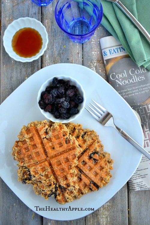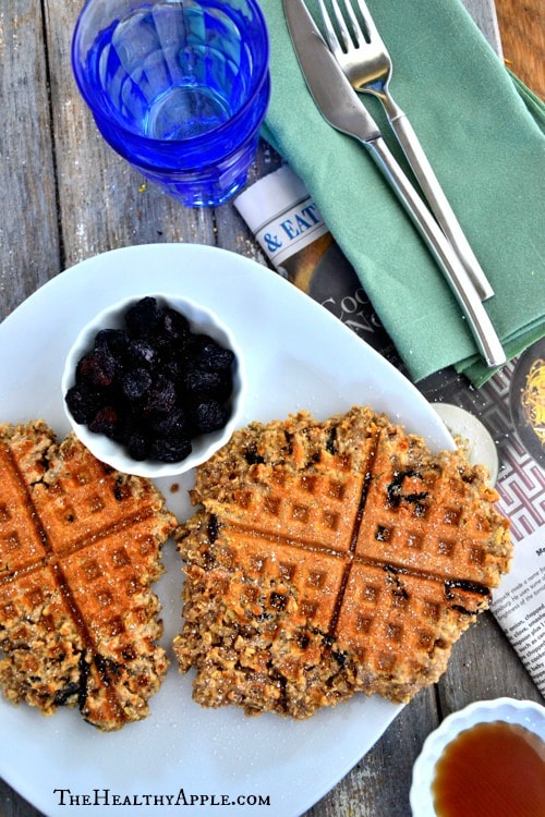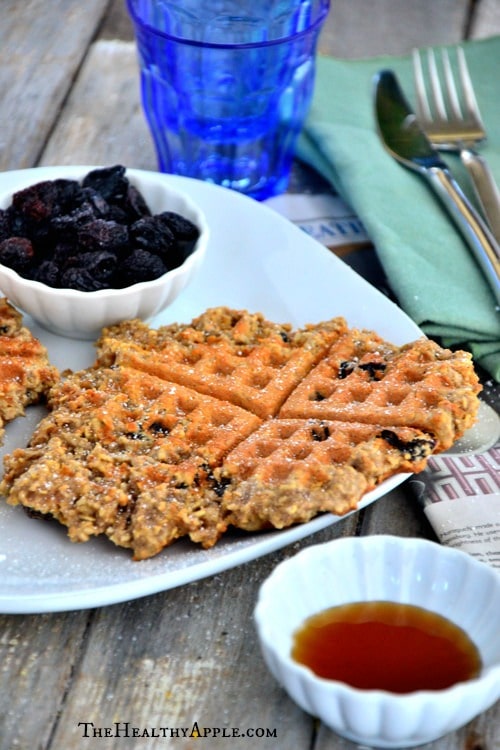 Serve waffles warm with a side of dried cherries or pure maple syrup, if desired.