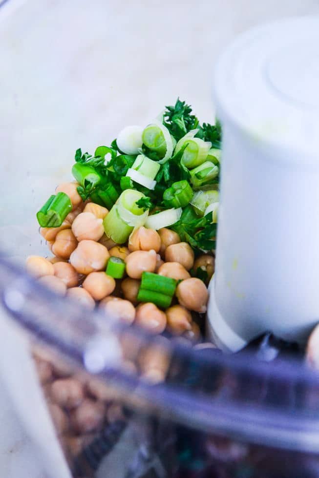 If you’ve never made falafel, don’t worry. All you’re going to do is toss all the falafel ingredients into a food processor to make them into a ‘dough’ like consistency, then roll them into a bowl of sesame seeds and pop them in the oven. The sauce is done the same way, just toss all the sauce ingredients in a food processor and puree until smooth.