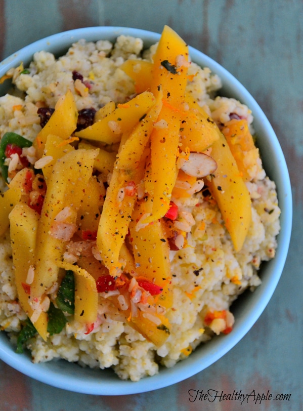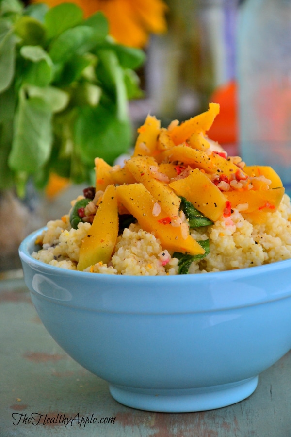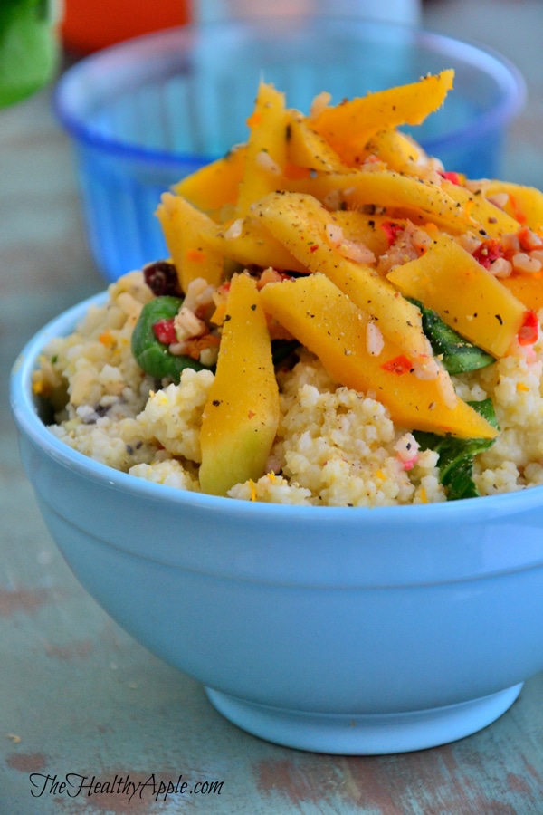 It’s topped off with a hint of sweet mango and a simple yet sweet orange basil dressing that is sure to revisit your dinner table a few more times this summer. Trust me. You’ll be addicted to the dressing and the millet.