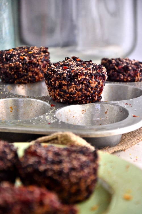 If you haven’t used your muffin tin for anything other than sugary muffins or cupcakes…. well then you’re in for a real treat. And bonus… these black rice bites make great snacks for traveling and are perfect to pack when you need an afternoon snack for the kiddies! Pack a few extra for yourself because you’re going to love every bite of these guys.
