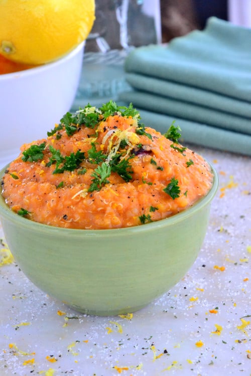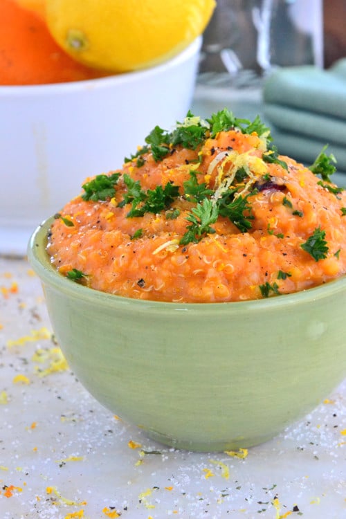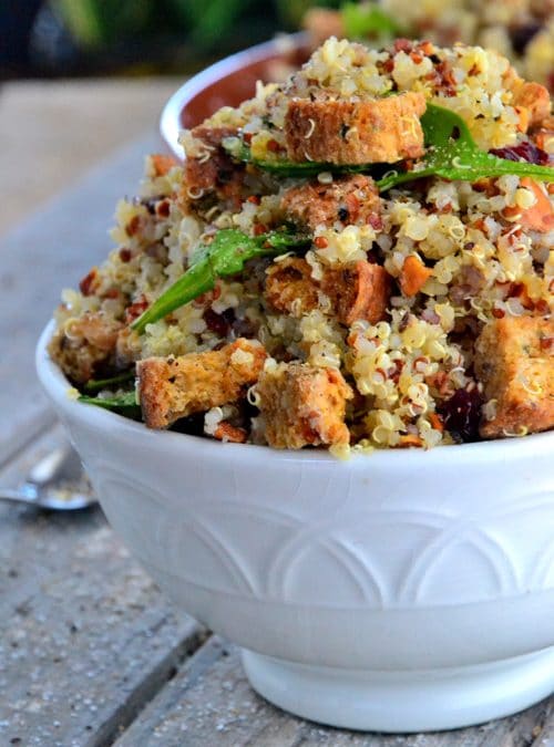 You should probably stock up on quinoa and sweet potatoes because you’ll want to serve this one again next week…. and possibly for Thanksgiving, too!