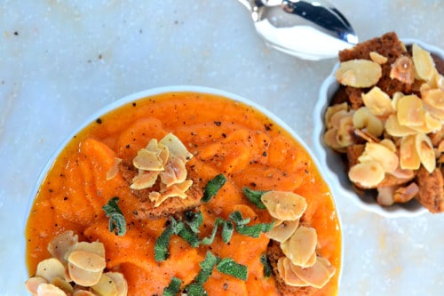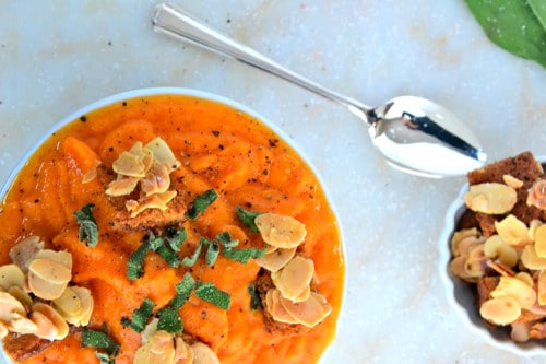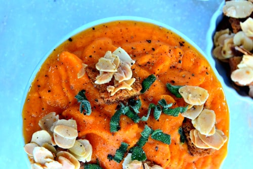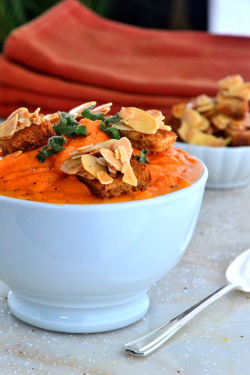 Amie ~ this is fabulous! i love, love, love carrot soup – haven’t made mine w/almonds as i tend to make ‘cream’ soups w/cashew cream – but am going to give this one a go – just beautiful!