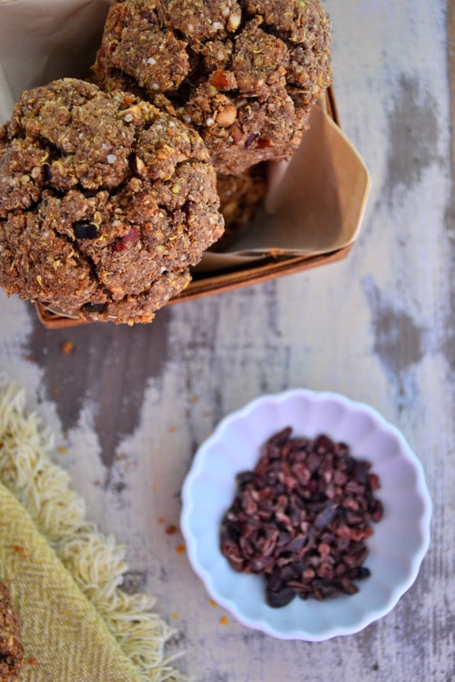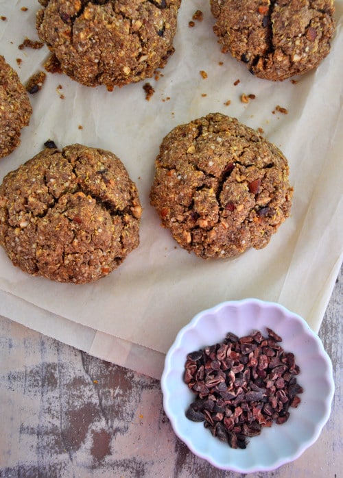 Denise, I used cacao nibs in a few of the cookies but not all and decided to leave them out of the recipe but you can surely add them in next time! xox