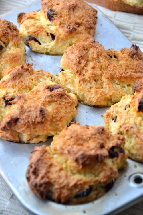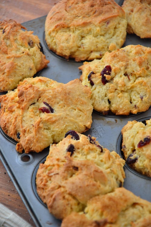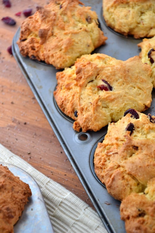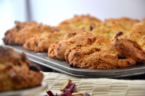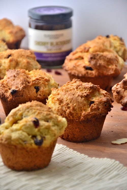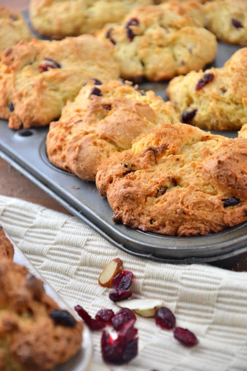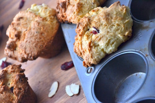 These here muffins aren’t just any oatmeal muffins; they’re packed with fresh lemon juice, orange zest, dried cranberries and almonds.