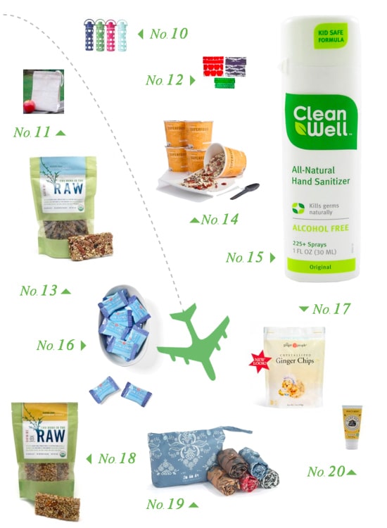 1. Fresh Breath Spray // 2. Organic Crystalized Ginger // 3. Rahua Travel Shower Kit // 4. Chocolate Gluten-Free Keenwah Bites // 5. Nutcase Gluten-Free Paleo Crunch // 6. Market Tote // 7. Original Granola // 8. Pill Box // 9. To-Go Bamboo Utensil Set // 10. Glass Water Bottle // 11. Reusable Lunch Bag // 12. Reusable Sandwich & Snack Bags // 13. Two Moms in the Raw Gluten-Free Organic Blueberry Bars // 14. Goji Cacao Superfood Cereal // 15. Chemical-Free Hand Sanitizer // 16. Ginger Gin Gins Candy // 17. Organic Ginger Chips // 18. Gluten-Free Two Moms in the Raw Organic Goldenberry Bars // 19. Reusable Fold-Up Bags // 20. Diaper Ointment