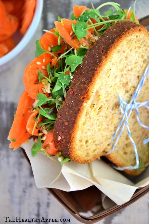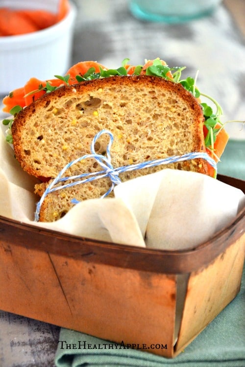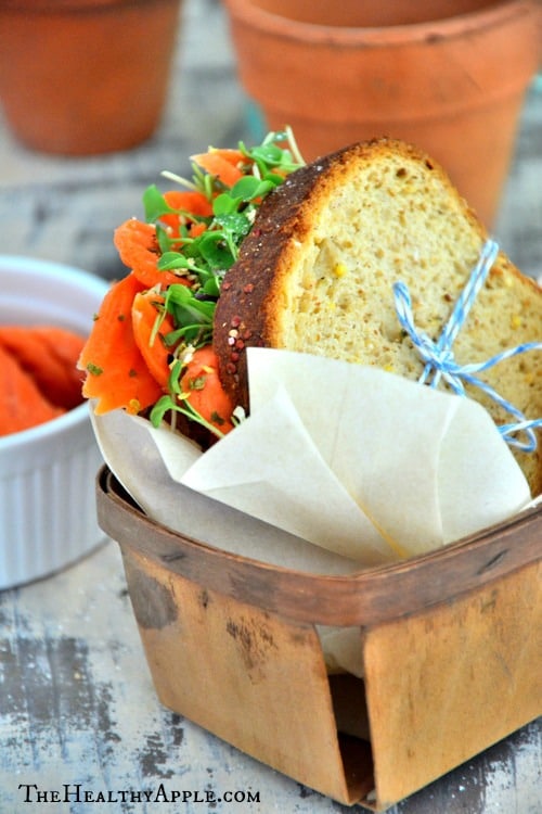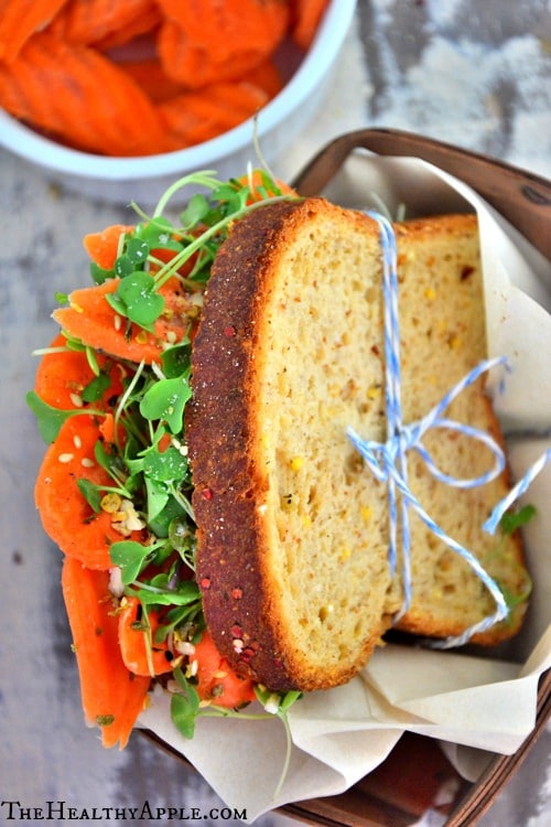 DSC_0587 (2)I know you’re all looking for healthy gluten-free lunch ideas, aren’t you? It’s back-to-school season and everyone from the 5-year-old down the street to my corporate America neighbor wants a little yumminess for lunch tomorrow. I just know it! That’s why today, I’m sharing this super delicious veggie sandwich with you.