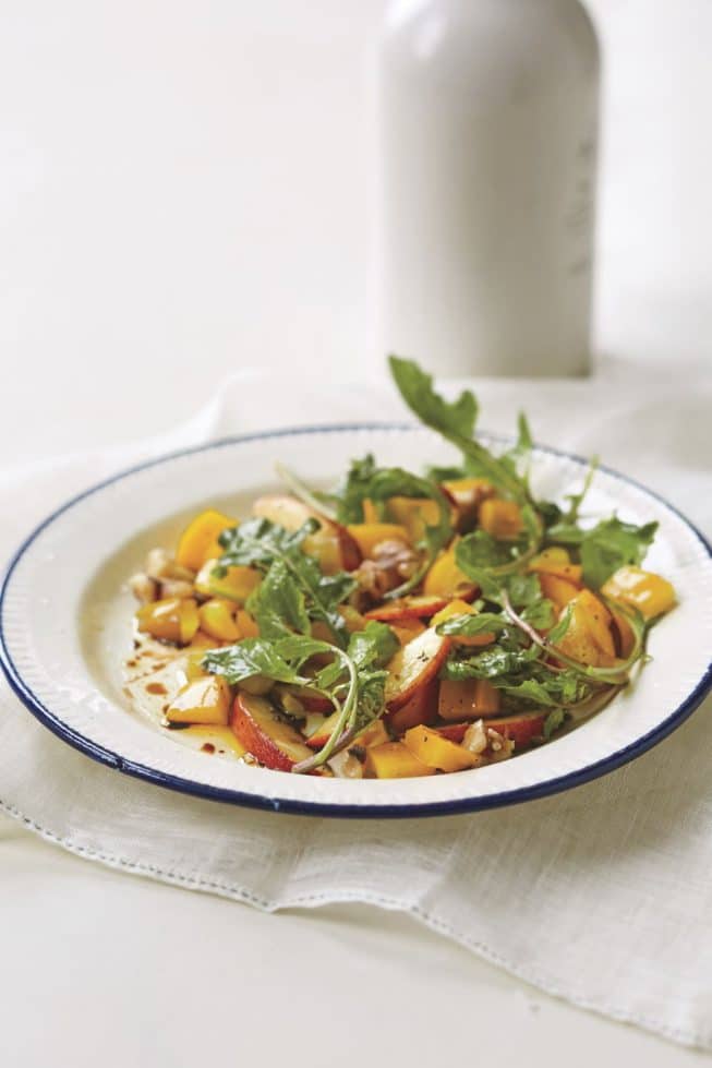 - Grilled Peach and Dairy-Free Cashew Cheese Zucchini Rounds with Honey Chili Sauce (page 179)