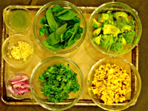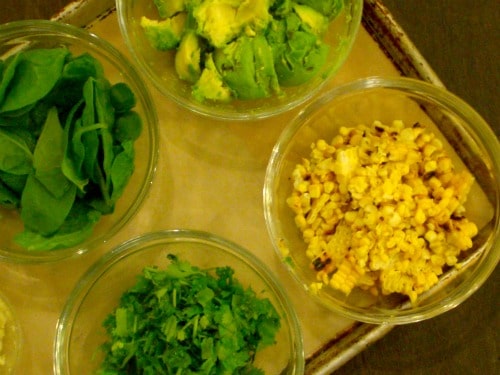 I had some fresh asparagus floating around in my fridge along with some corn so I thought why not make use of my two ripe avocados and get to work?