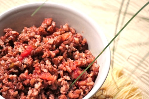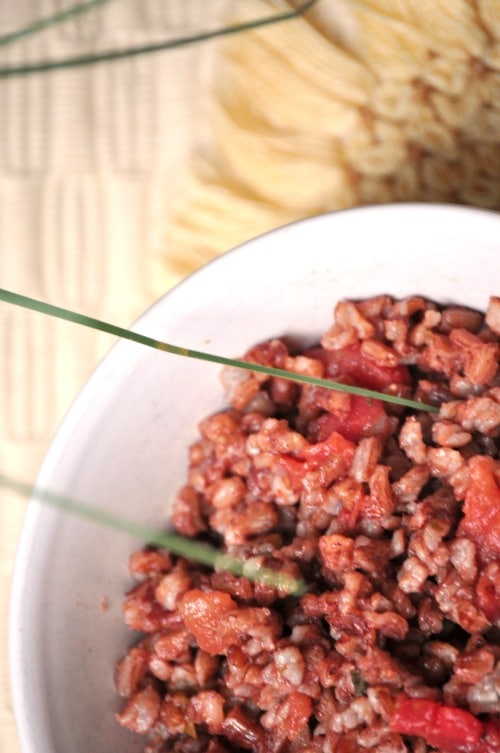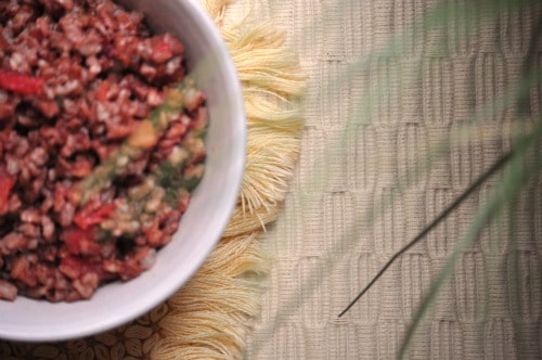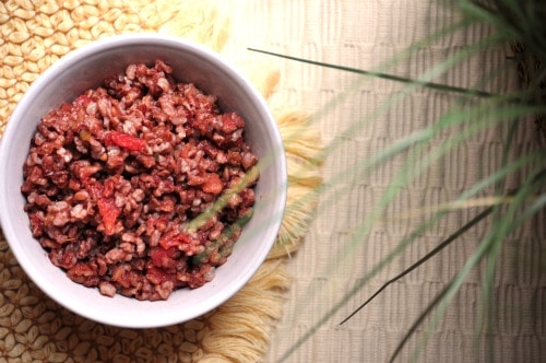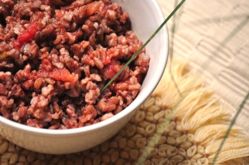 A nice combination of pretty, red quinoa and brown rice.