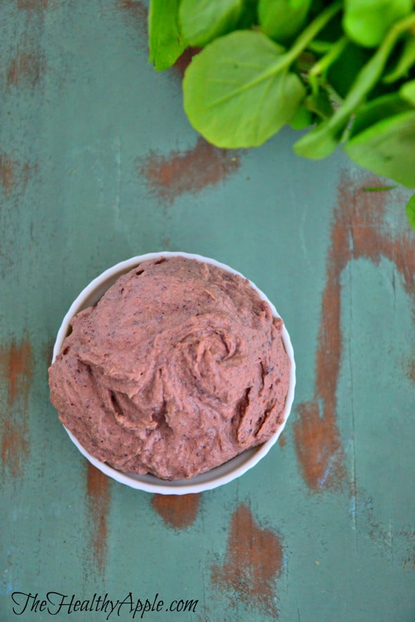 When I puree black beans in the food processor, they often come out with a bit of a blueish purple color, which is what happened here. Add a bit of tahini and you’ve gotta a pretty purple eater ready to be scooped up into some gluten free chips or raw veggies.