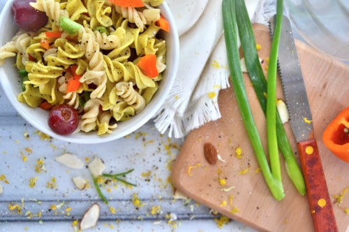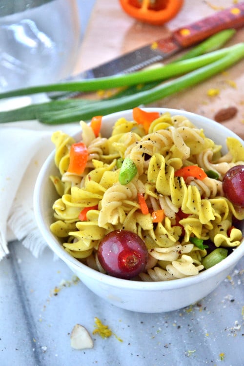 I so wish you could all come over to my Manhattan apartment for lunch. Wouldn’t that be fun? Even though I live in a typical NYC shoebox apartment I think we could all fit- or at least take turns coming in and out for a bite of pasta…kinda like musical chairs. I just wouldn’t want anyone waiting out in the hallway so I’d just invite you all in. It’d be cozy and fun, don’t cha think?