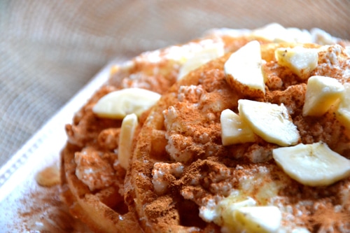 Growing up, my father made us waffles every Sunday- you know – those fluffy, golden-brown, succulent dream-boat waffles that you just want to sink your teeth into and bury in a puddle of syrup.