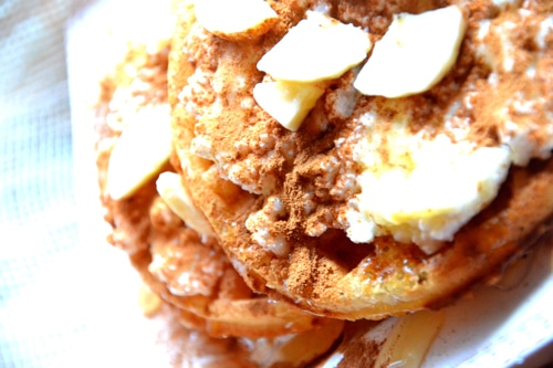 But I can take credit for this recipe- and my clients were beyond excited to come over for their appointments this week because I served these Cinnamon n’ Honey Morning Waffles everyday.