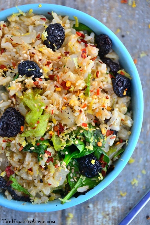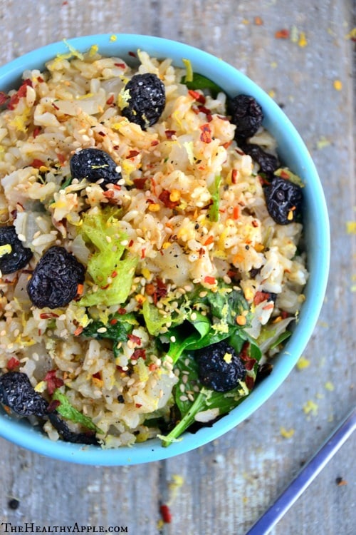 I’ve posted a few rice dishes lately because I love how easy and delicious they are. I mean, come on… make a batch of rice on a Sunday night and you’ve gotta week’s worth of yummy recipes to make. Rice porridge for breakfast, rice burritos for lunch, rice salad for dinner and rice pudding for dessert. Easy as 1, 2, 3. But have you ever tried cooking with tea and making a rice recipe? I didn’t think so!