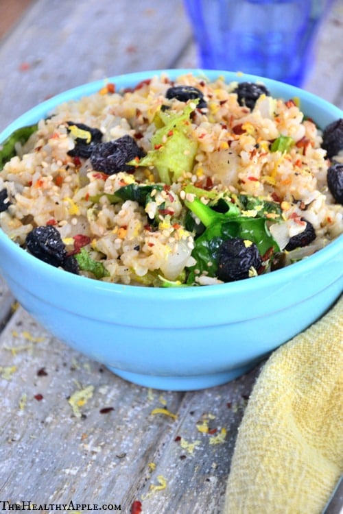 I make my rice salads in a simple way using brown rice, Vidalia onions, dried cherries, summer fresh basil and freshly brewed green tea. It’s the best and is one of my favorite lunches.