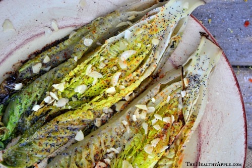 I LOVE LOVE LOVE grilled Romaine! You’ve done awesome things with your preparation method here- since I love almonds too, I know I will love this one! Can’t wait to see you this weekend!