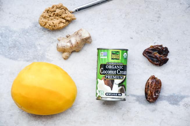 Coconut cream! No, this is not the same thing as coconut milk, which is why I’m linking to the coconut cream here for you. It’s only $1 and it’s super flavorful. This is the creamy portion of coconut milk without the water so it makes desserts super creamy without dairy.