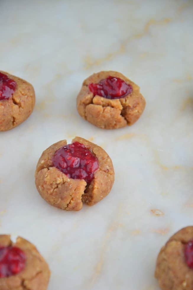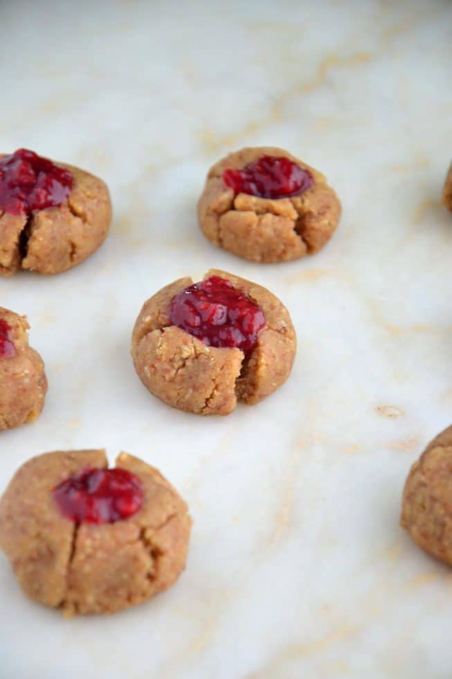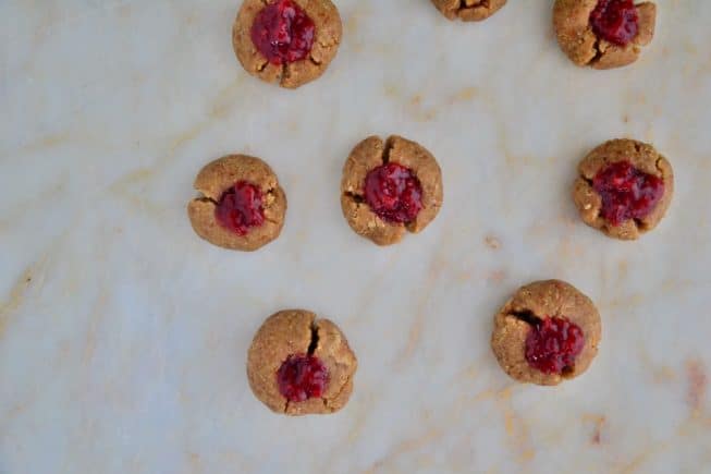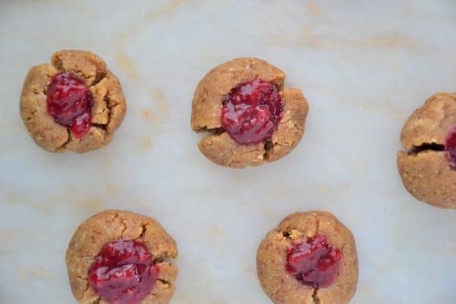 I’ve been making these thumbprint cookies for years – when all-purpose flours started to hurt my belly and xanthan gum and those other awful binders bloated my stomach like crazy, I decided to explore the world of simple no-bake baking. And surprisingly, I discovered a million ways to match your sweet tooth without having to use any processed flours or binders.