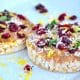 Lay rice cakes on a flat surface. Spread almond butter onto each rice cake using a knife. Top with remaining ingredients.