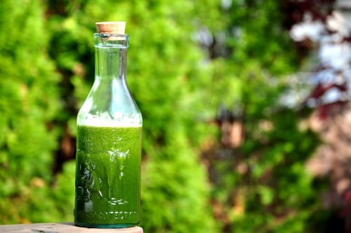 Numerous studies link this white bulb to cancer prevention. Garlic’s anticancer chemical, diallyl disulfide, can be inactivated in heated too soon after peeling, so if you’re using garlic in cooking recipes, be sure to wait 15 minutes before cooking. As for this juice recipe, I used raw garlic. I simply chop 1 clove and plop it into the blender to add to the juice. Just be sure to brush those teeth after you sip as it may leave your breath a bit stinky.