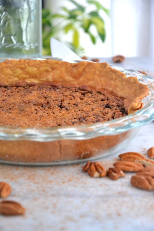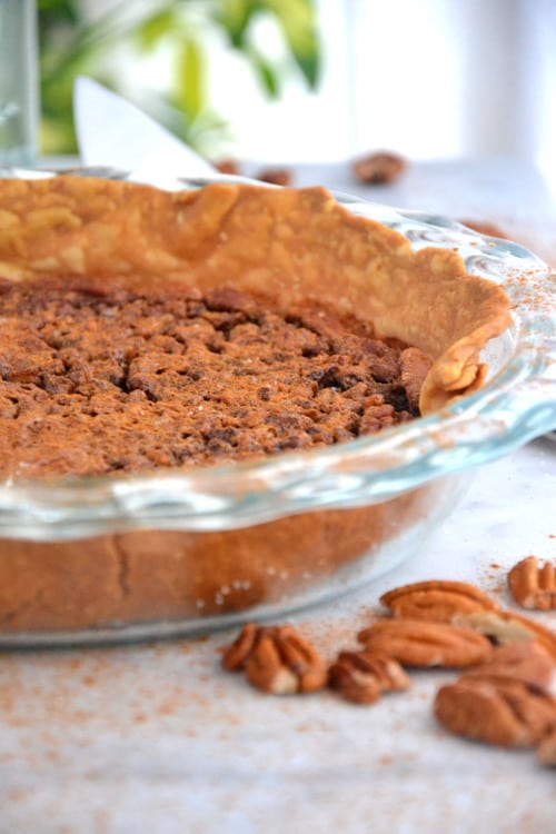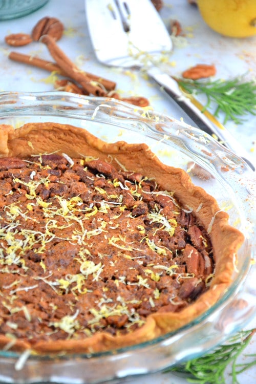 After having a slice, I realized this pie is exactly what I was missing the past thirty years. It’s a bit more moist than your average pecan pie and maybe not as pretty as the ones that look perfect in the food store, but wow, this pie is so yummy.