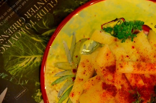 Amie: I am Mexican and “Jicama” is a very popular ‘snack’ for us. We traditionally eat it like you did it, cut into ‘fries’ with just lime, salt and hot sauce sprinkle over them or made into a salad mixed with fruit: Peel then cube the Jicama, add Orange or Mango segments, again squeeze lime juice over, salt and add dashes of hot pepper sauce like Tapatio (my fav), Cholula or Valentina.