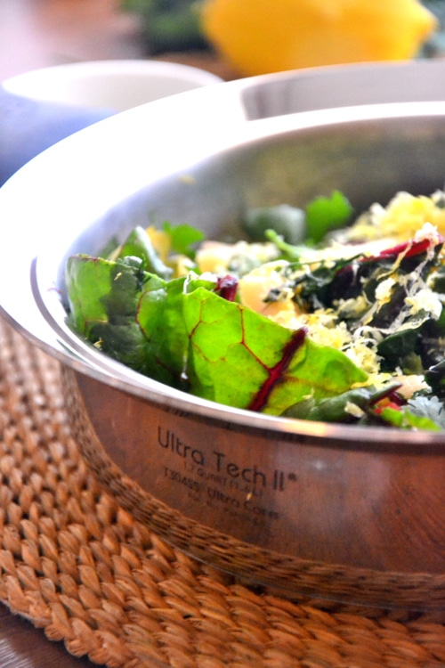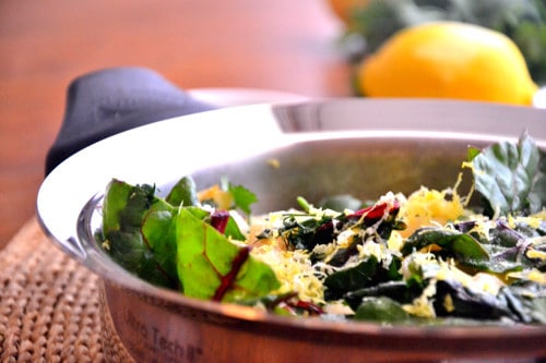 I’m not just talking about the sweet taste of my fresh rainbow Swiss chard recipe but my shiny new pans that I just can’t get enough of.