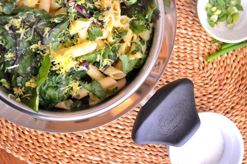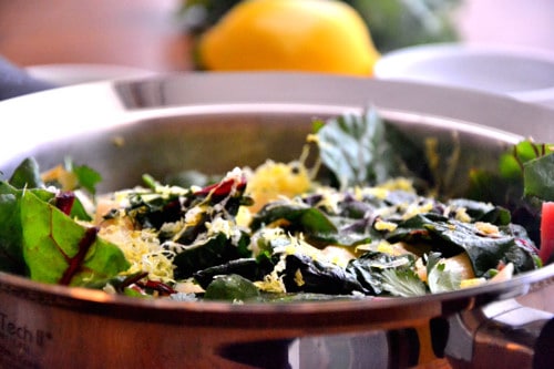 Remove from heat; drain off excess liquid. Add pine nuts, lemon juice, lemon zest, scallions, sea salt and pepper.