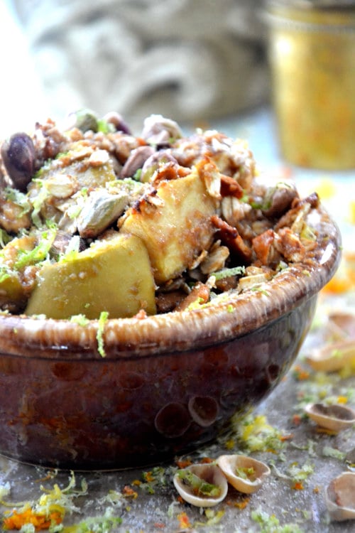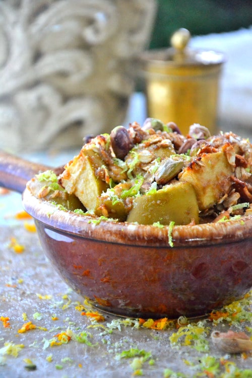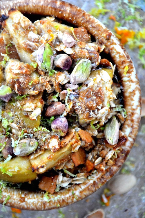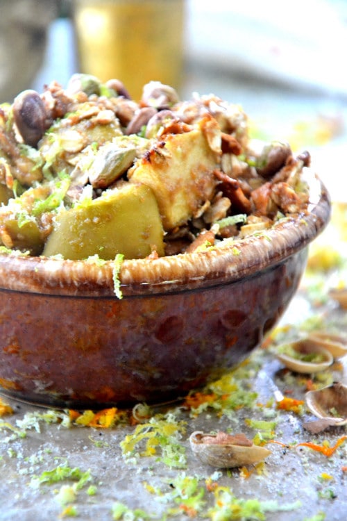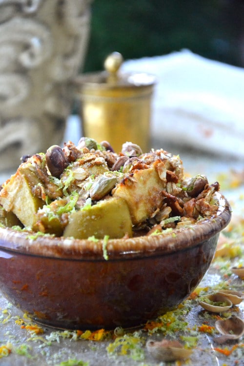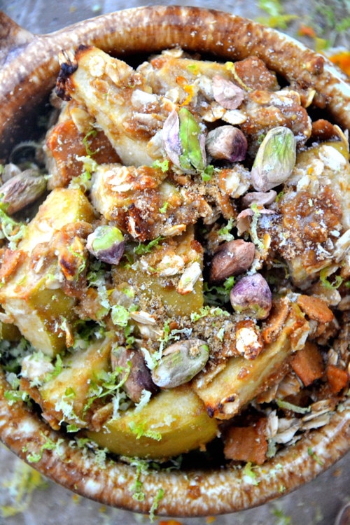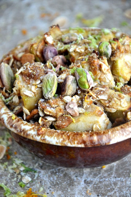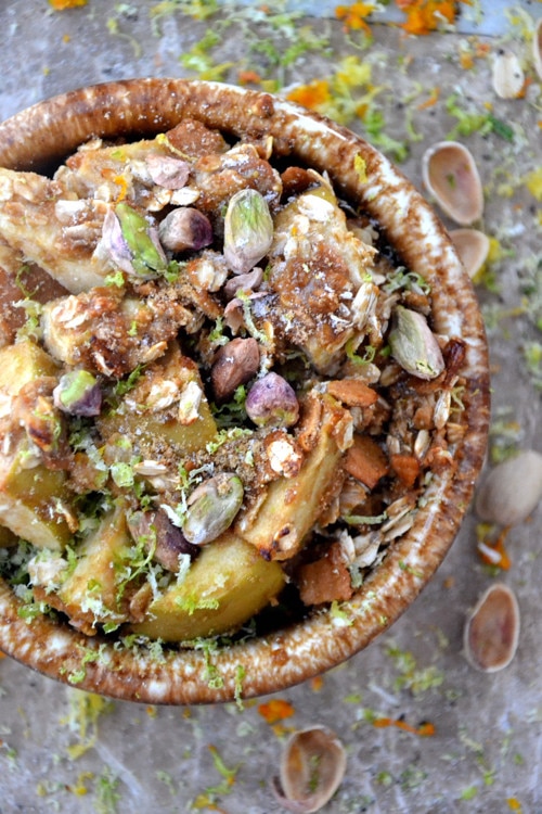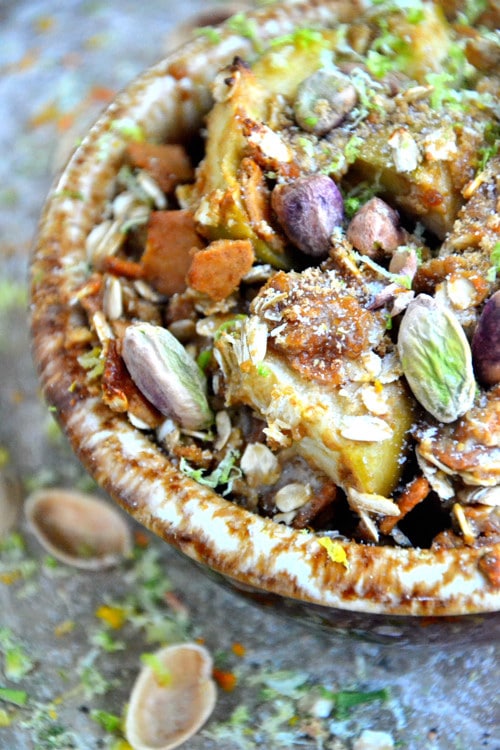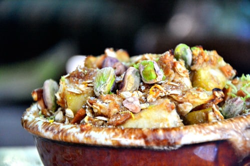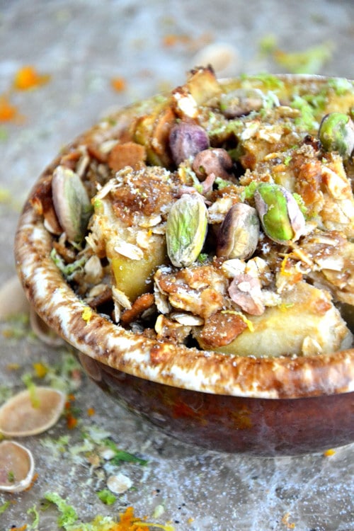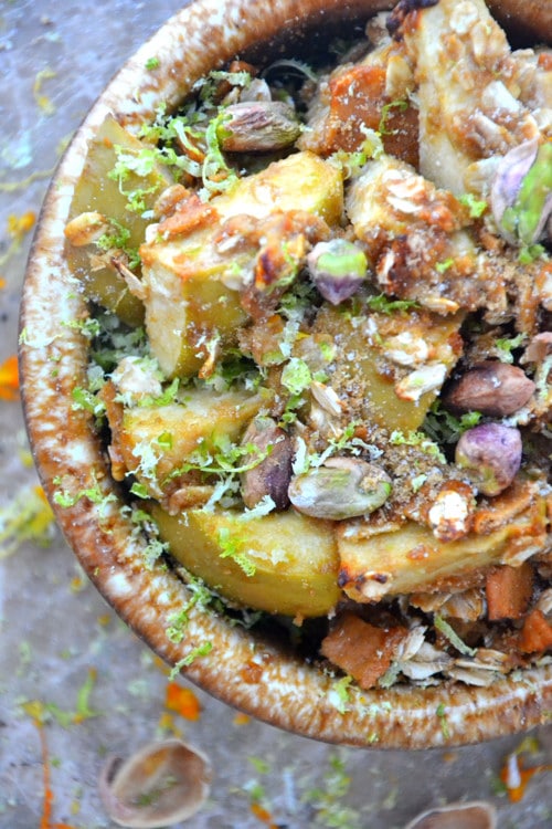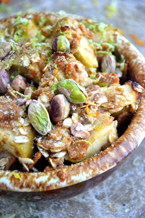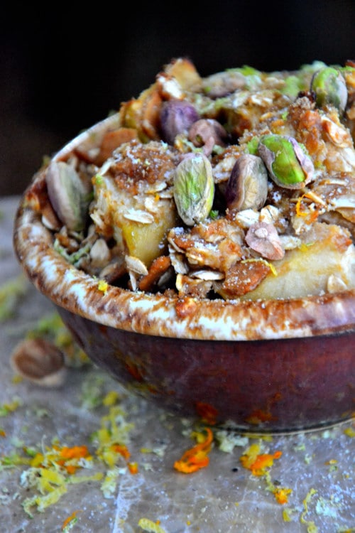 It’s hearty, flavorful an full of everything healthy…like apples, pistachios n’ oats.Β We’ve all tasted a fancy crisp or a cobbler at one point in our lives but I assure you – you ain’t tasted one like this before.