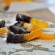 Once dry, dip each orange peel into melted dark chocolate; coat only the tip. Set aside to cool in the fridge on parchment paper for 20 minutes.