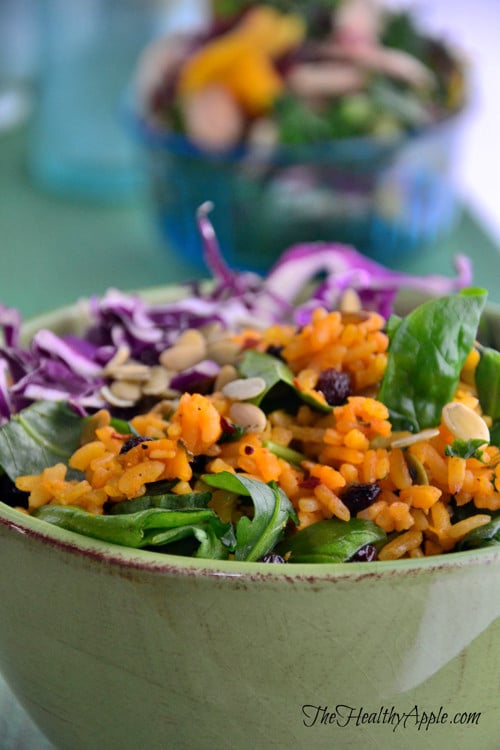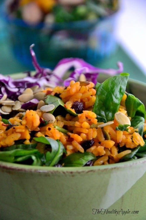Remove from heat. Portion rice into serving bowls with cabbage, cilantro, currants, spinach, greens, pumpkin seeds, sea salt and pepper, to taste and a drizzle of lime juice. Serve warm.