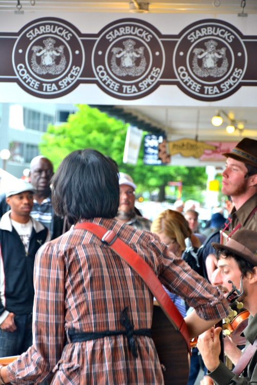 I was so content – watching the banjo playing and sipping my tea on the Seattle streets.