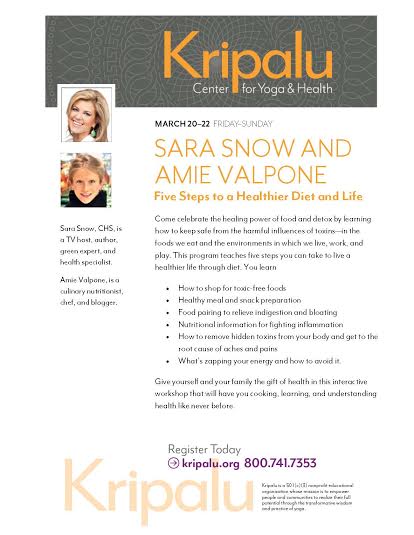 And if you missed my message from a few weeks ago, I want to personally invite all of you to my 3 Day Workshop at Kripalu “5 Steps to a Healthier Diet & Life” that I’ll be hosting with my amazing friend, Sara Snow. The workshop will take place Friday evening, Saturday and Sunday March 20-22. More info is below. I’d love to see you there. Space is limited, so if you are interested you can Register HERE and here is more info about our workshop on the Kripalu website.