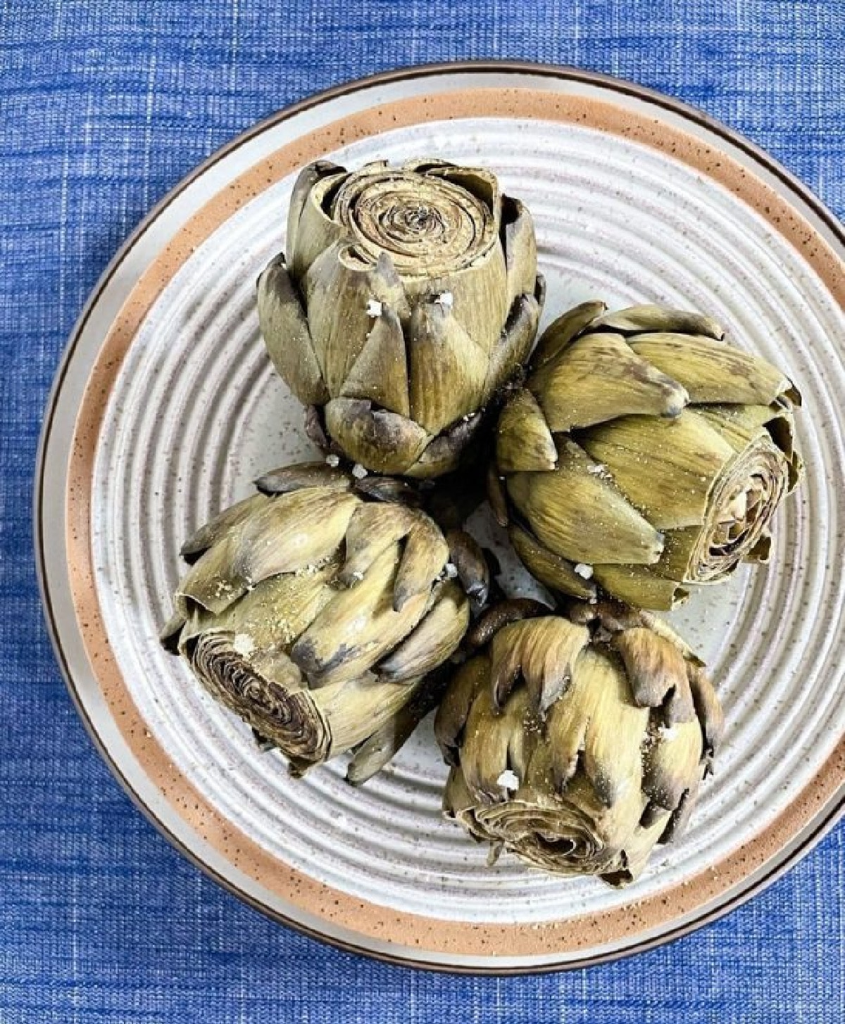 While artichokes can seem intimidating when you look at them, they’re quite easy to cook. I always choose an easy method for cooking all my meals and this one is no different. All you need to do is trim the bottom stem and the top one-inch tip of the artichokes, then steam them on the stovetop for about 30-40 minutes. I love making these because they don’t require me hanging over the stovetop stirring or checking in on them – they simply steam and they’re done.