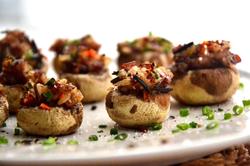 Anyway, back to the stuffed mushrooms…they’re tender and soft. Now normally, I prefer a chewier mushroom but I love the soft feel and texture of these. They’re perfectly savory and would be lovely drizzled with balsamic vinegar.