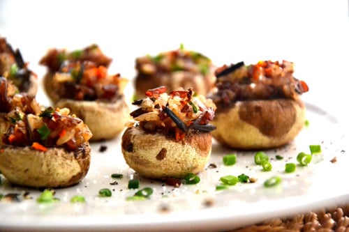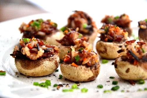 If you’re a big stuffed mushroom fan in general, you’ll go wild for these cute lil’ pine nut stuffed mushrooms. You’re probably going to giggle when I say this, but these cute bite sized snacks are the 2012 of stuffed mushrooms.