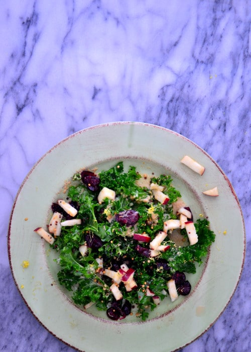 So, to get all of you in the Thanksgiving spirit, I’m going to share some of my tips and tricks that I’ve learned for how to navigate your Thanksgiving without chaos in your kitchen. I’ve combined tips I learned as a child here as well as what I’ve learned throughout the past 6 years making my own food for Thanksgiving and how I create amazing flavor without adding any of the ingredients that don’t work for my family. And I’ve also created a fabulous cranberry-themed recipe (aka–a fabulous kale salad with tahini dressing) for you below that I know you’re going to love!