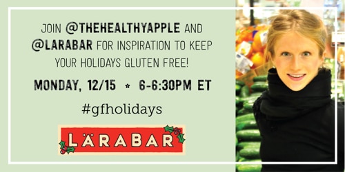And…if you’re free tonight from 6PM EST-6:30PM EST join me on twitter where I’ll be hosting the Larabar Twitter Chat for 30 minutes with lots of giveaways to attendees. You can follow #gfholidays during the party to follow along and get involved. Hope to see you there!